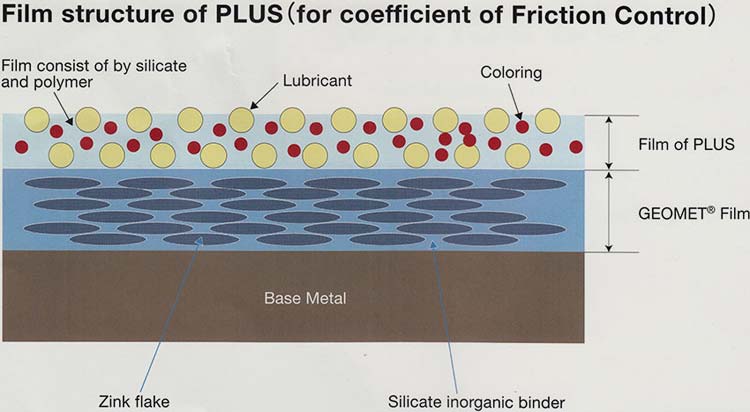 Improve corrosion resistance of GEOMET Applying GEOMET PLUS series over GEOMET coated will further improve the corrosion and chemical resistance .( Salt Spray Test according to ISO 9227 / ASTM B117 GEOMET® 720 + TOP COAT > 1500 hours without red rust)